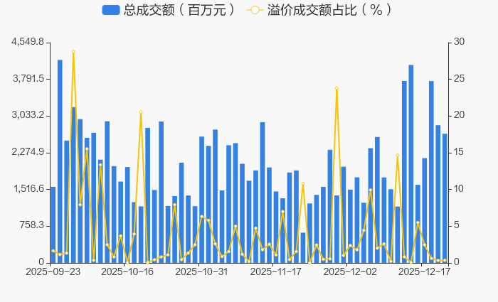 折溢价方面,溢价率最高的个股是胜业电气,溢价率为26.96%,成交价为34.00元,成交1笔金额为340万元,成交量10万股;折价率最高的个股是联动科技,折价率为27.55%,成交价为99.51元,成交4笔金额为988.15万元,成交量9.93万股。