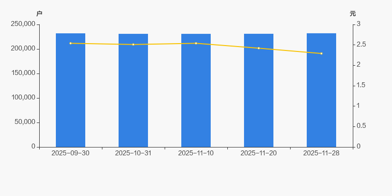 截至2025年11月28日,公司最新总股本为103.37亿股,其中流通股本为103.35亿股。户均持有流通股数量由上期的4.47万股下降至4.45万股,户均流通市值10.2万元。