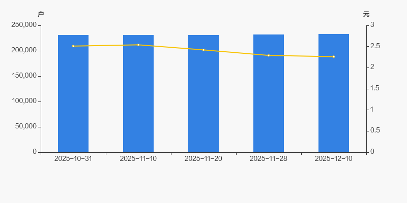 截至2025年12月10日,公司最新总股本为103.37亿股,其中流通股本为103.35亿股。户均持有流通股数量由上期的4.45万股下降至4.43万股,户均流通市值10.02万元。