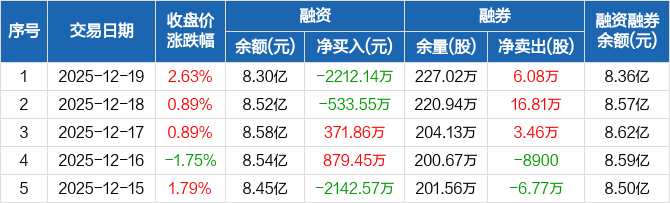 河钢股份:融资净偿还2212.14万元,融资余额8.3亿元(12-19)