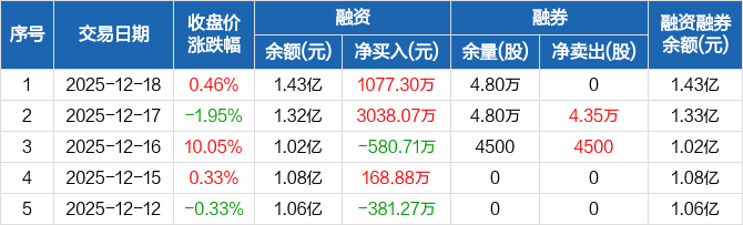 黑芝麻:融资净买入1077.3万元,融资余额1.43亿元(12-18)