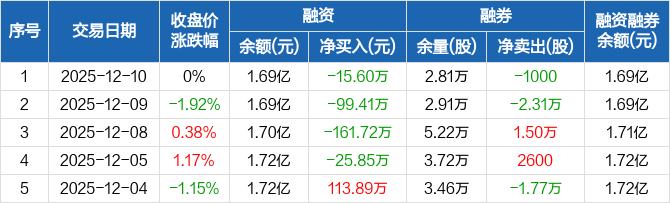 中南股份:连续4日融资净偿还累计302.58万元(12-10)