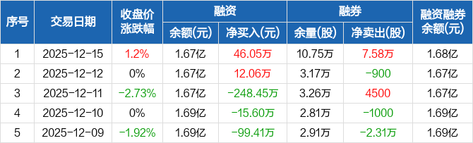 中南股份:融资净买入46.05万元,融资余额1.67亿元(12-15)