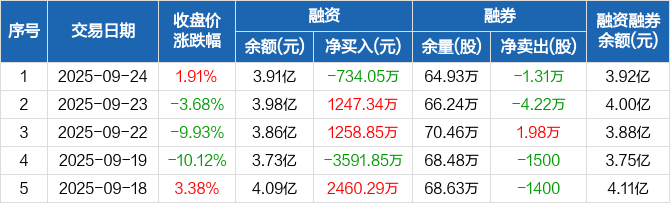 苏宁环球:融资净偿还734.05万元,融资余额3.91亿元(09-24)