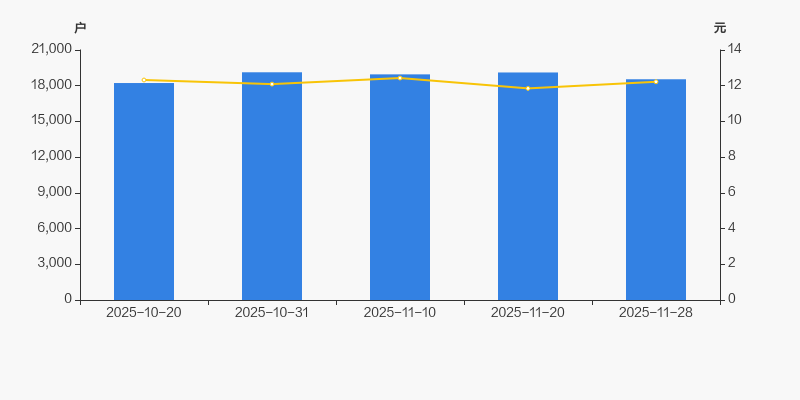2025年10月20日至今,公司股东户数有所增长,区间涨幅为1.74%。2025年10月20日至2025年11月28日区间股价下降0.81%。