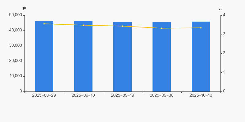 2025年8月29日至今,公司股东户数有所下降,区间跌幅为0.65%。2025年8月29日至2025年10月10日区间股价下降5.92%。