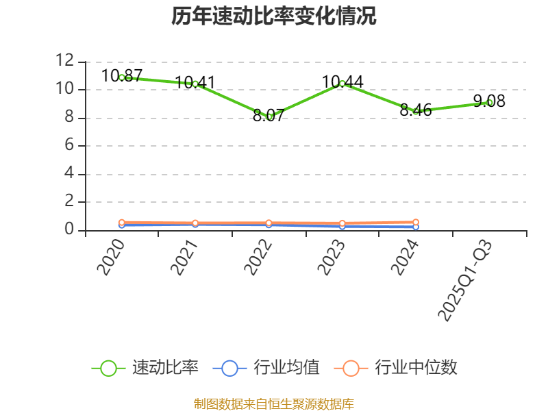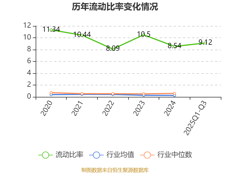 2025年前三季度,公司流动比率为9.12,速动比率为9.08。