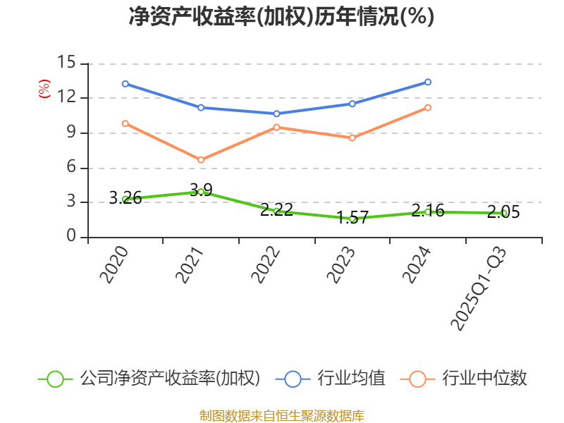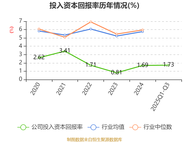 盈利能力方面, 2025年前三季度公司加权平均净资产收益率为2.05%,同比上升0.09个百分点。公司2025年前三季度投入资本回报率为1.73%,较上年同期上升0.08个百分点。