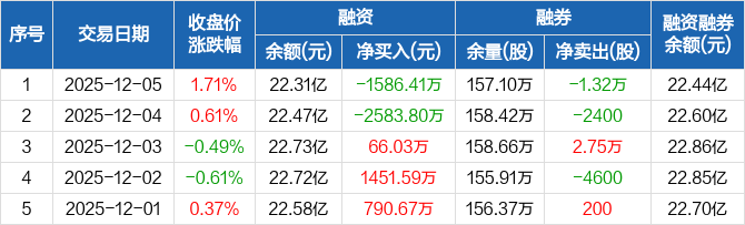 国元证券:融资净偿还1586.41万元,融资余额22.31亿元(12-05)