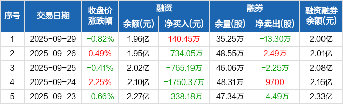 燕京啤酒:融资净买入140.45万元,融资余额1.96亿元(09-29)
