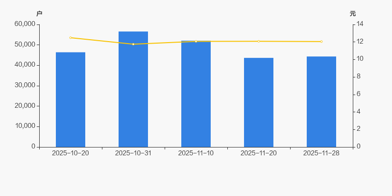 2025年10月20日至今,公司股东户数有所下降,区间跌幅为4.45%。2025年10月20日至2025年11月28日区间股价下降3.52%。