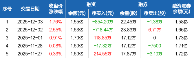 燕京啤酒:融资净偿还854.2万元,融资余额1.55亿元(12-03)
