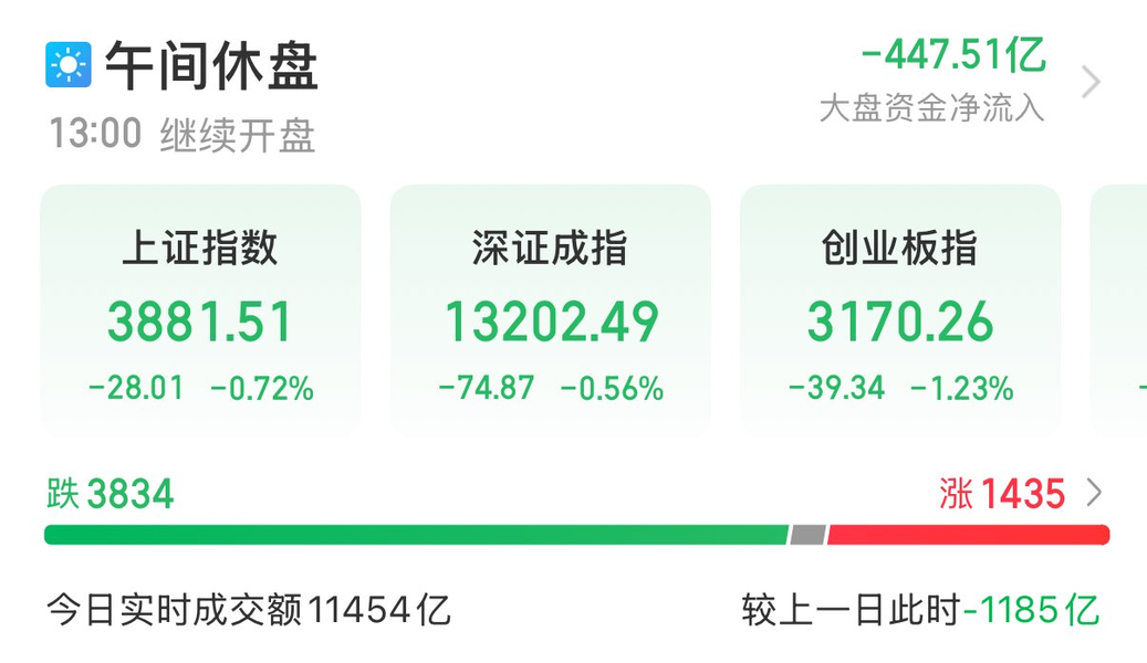 12月10日,三大指数震荡调整。截至午盘,上证指数跌0.72%,深证成指跌0.56%,创业板指跌1.23%。全市场成交额近1.15万亿元,较上日同期缩量1185亿元。