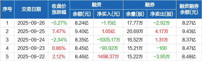 北方铜业:融资净偿还1.15亿元,融资余额8.24亿元(09-26)