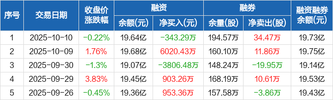 国海证券:融资净偿还343.29万元,融资余额19.64亿元(10-10)