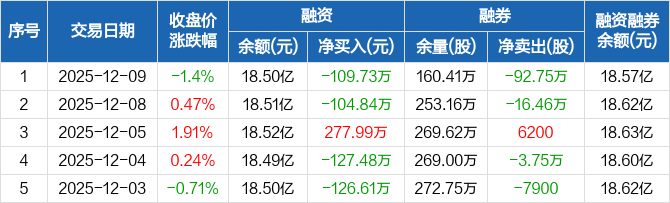 国海证券:融资净偿还109.73万元,融资余额18.5亿元(12-09)