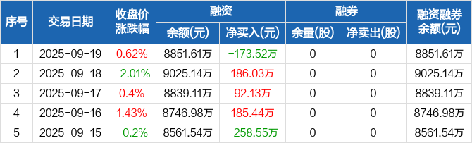 山西高速:融资净偿还173.52万元,融资余额8851.61万元(09-19)