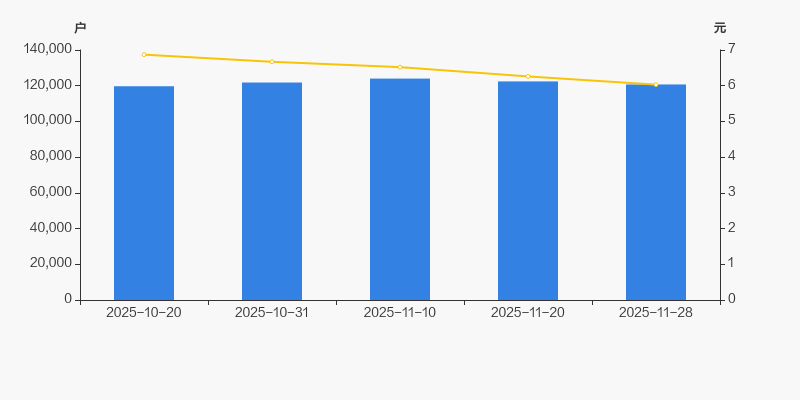 2025年10月20日至今,公司股东户数有所增长,区间涨幅为0.84%。2025年10月20日至2025年11月28日区间股价下降12.23%。