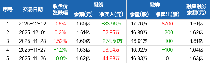 本钢板材:融资净偿还83.96万元,融资余额1.6亿元(12-02)