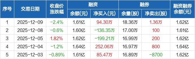 本钢板材:融资净买入94.3万元,融资余额1.61亿元(12-09)