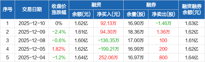 本钢板材:融资净买入92.13万元,融资余额1.62亿元(12-10)