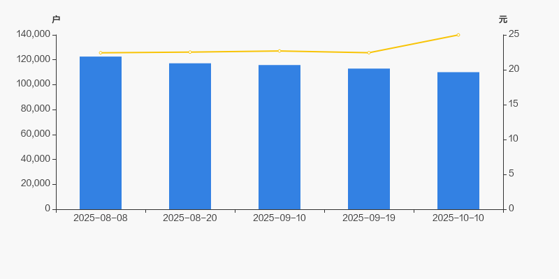 自2025年8月8日以来,公司股东户数连续4期下降,截至目前减幅为10.22%。2025年8月8日至2025年10月10日区间股价上涨11.41%。