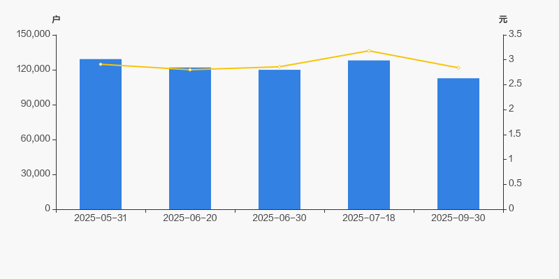 截至2025年9月30日,公司最新总股本为30.77亿股,其中流通股本为29.12亿股。户均持有流通股数量由上期的2.27万股上升至2.58万股,户均流通市值7.34万元。