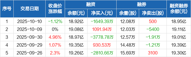 中航西飞:融资净偿还1649.39万元,融资余额18.92亿元(10-10)