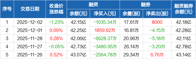广发证券:融资净偿还1035.34万元,融资余额42.15亿元(12-02)