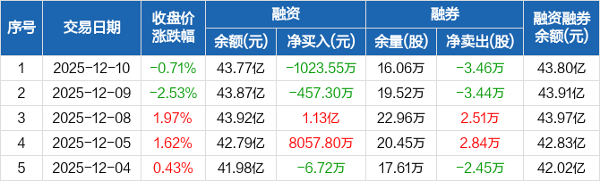 广发证券:融资净偿还1023.55万元,融资余额43.77亿元(12-10)