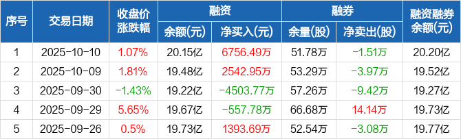 长江证券:融资净买入6756.49万元,融资余额20.15亿元(10-10)