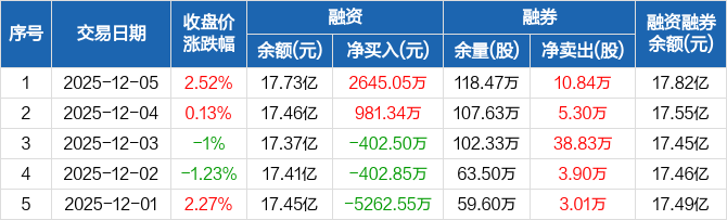 长江证券:融资净买入2645.05万元,融资余额17.73亿元(12-05)
