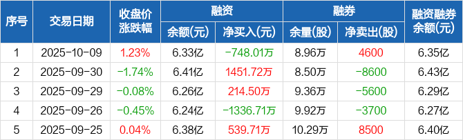 北新建材:融资净偿还748.01万元,融资余额6.33亿元(10-09)
