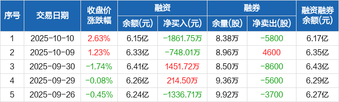 北新建材:融资净偿还1861.75万元,融资余额6.15亿元(10-10)