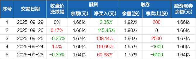 万年青:融资净偿还2.35万元,融资余额1.66亿元(09-29)