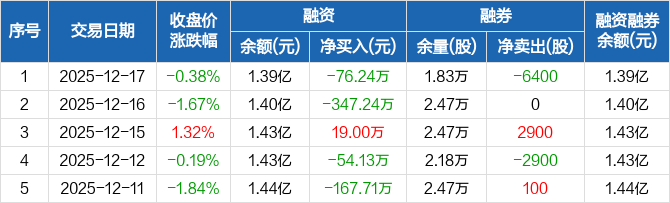 万年青:融资余额1.39亿元,创近一年新低(12-17)