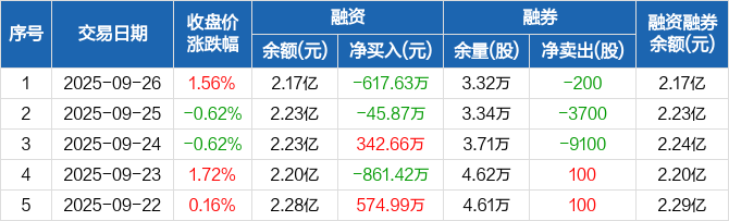 甘肃能源:融资净偿还617.63万元,融资余额2.17亿元(09-26)