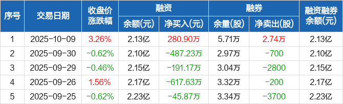 甘肃能源:融资净买入280.9万元,融资余额2.13亿元(10-09)