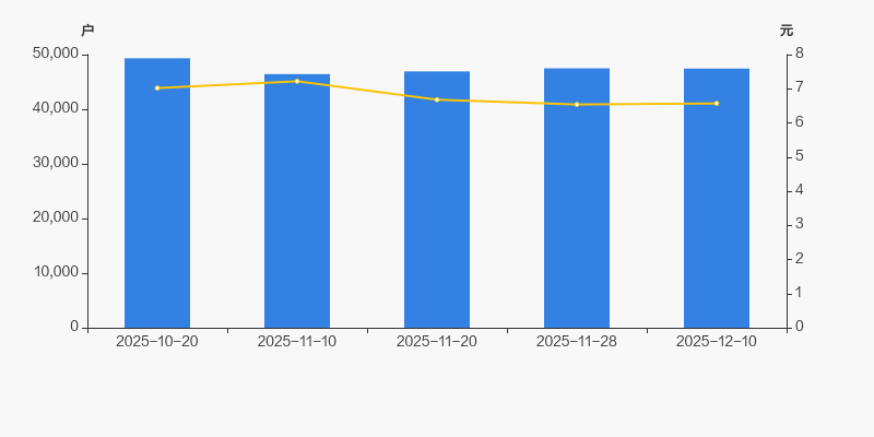 2025年10月20日至今,公司股东户数有所下降,区间跌幅为3.83%。2025年10月20日至2025年12月10日区间股价下降6.41%。