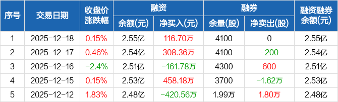 甘肃能源:融资净买入116.7万元,融资余额2.55亿元(12-18)