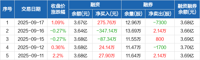 英洛华:融资净买入275.76万元,融资余额3.67亿元(09-17)