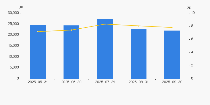 2025年5月31日至今,公司股东户数显著下降,区间跌幅为10.83%。2025年5月31日至2025年9月30日区间股价上涨8.77%。