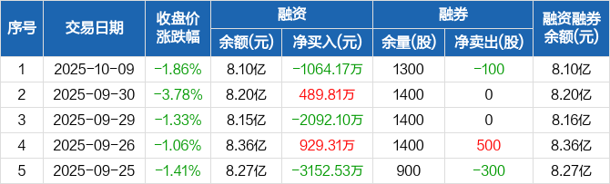 酒鬼酒:融资净偿还1064.17万元,融资余额8.1亿元(10-09)