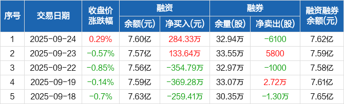 一汽解放:融资净买入284.33万元,融资余额7.6亿元(09-24)