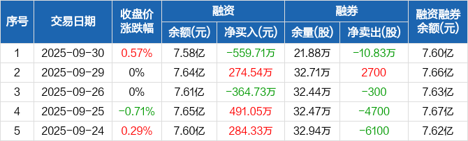 一汽解放:融资净偿还559.71万元,融资余额7.58亿元(09-30)