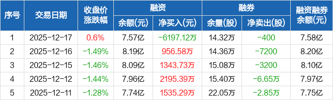 一汽解放:融资净偿还6197.12万元,创近一年新高(12-17)