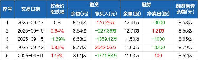 四川九洲:融资净买入176.29万元,融资余额8.56亿元(09-17)