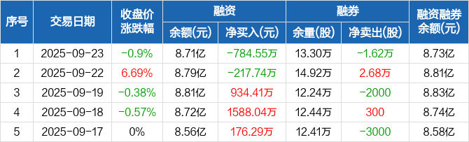 四川九洲:融资净偿还784.55万元,融资余额8.71亿元(09-23)