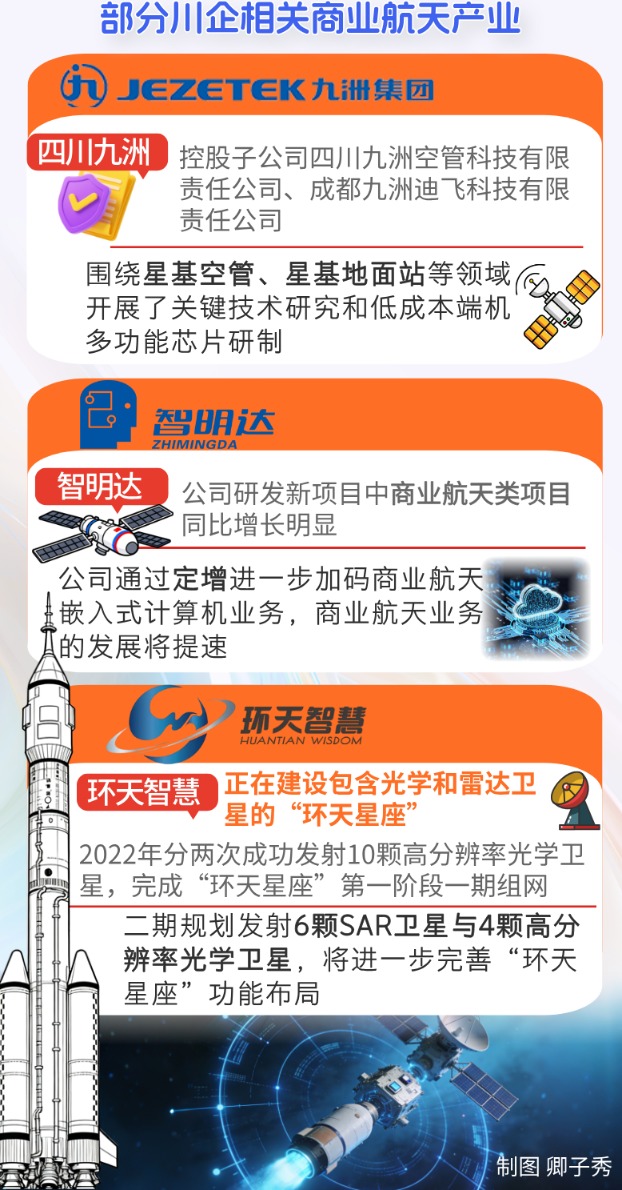 在技术进步和市场需求变化的提振下,商业航天产业正朝着万亿规模挺进,企业则在商业航天产业发展中扮演着技术创新的推动者角色。就四川省来看,据不完全统计,省内与商业航天产业相关的企业已超过百家,形成了相对完整的产业链,其中多家上市公司深度涉足其中。