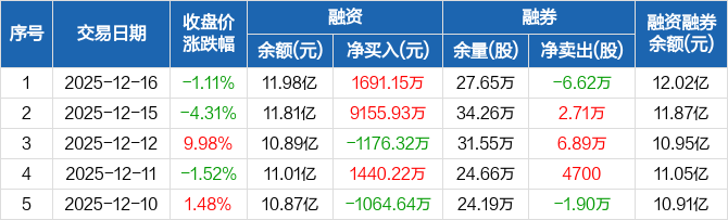 四川九洲:融资余额11.98亿元,创历史新高(12-16)